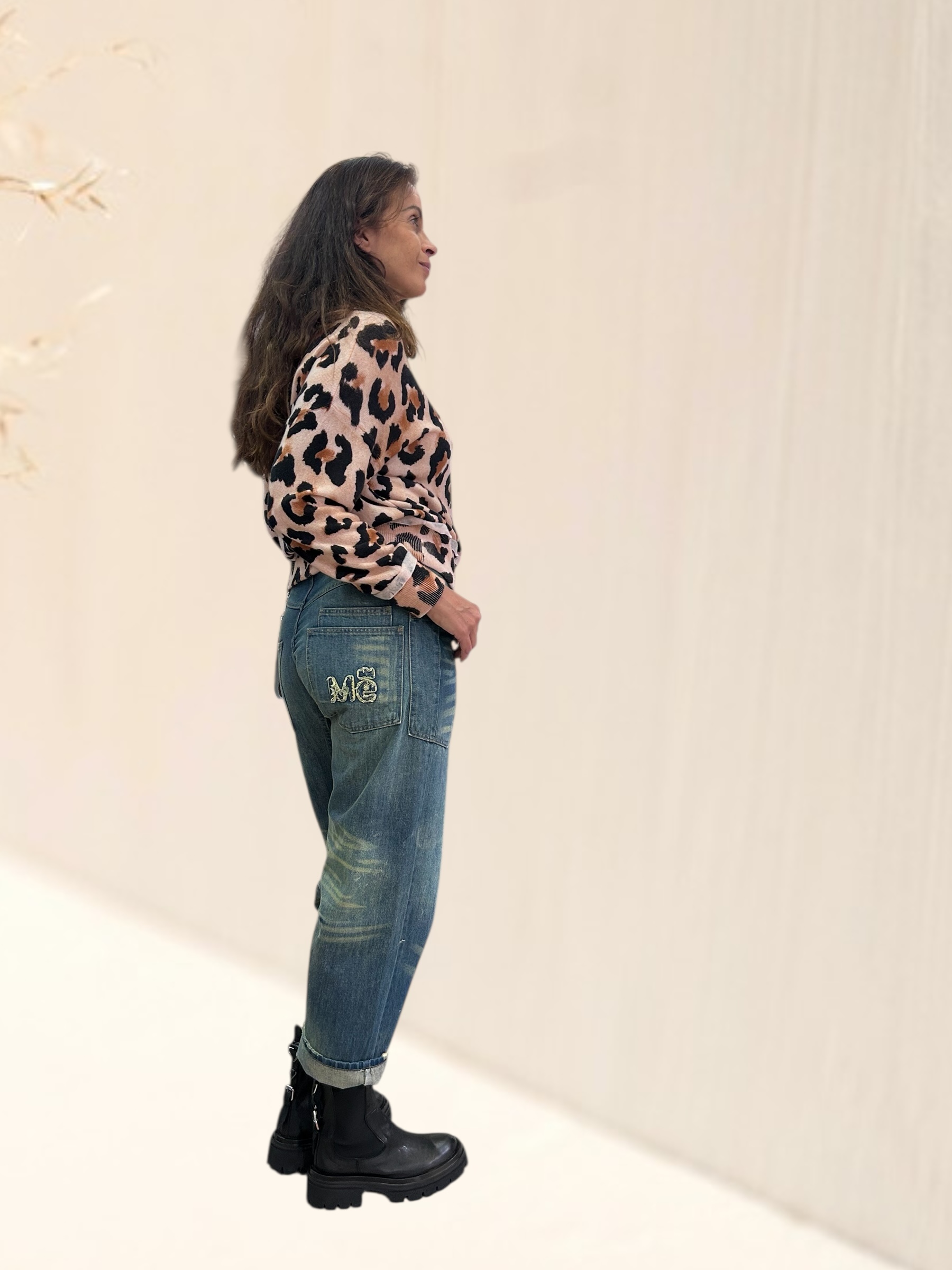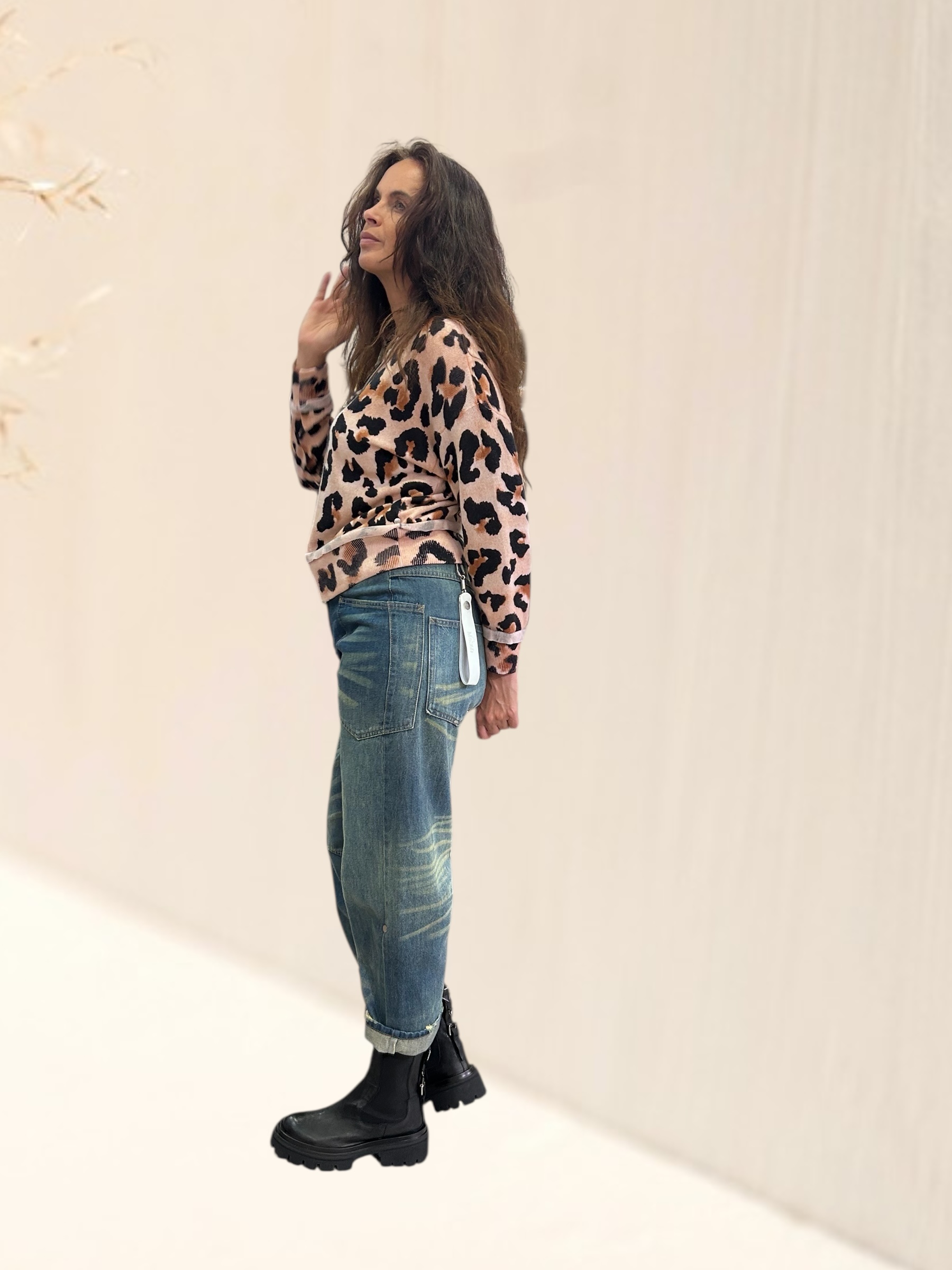 Cardigan 100% Cachemire ,double Zip ,imprimé leopard.